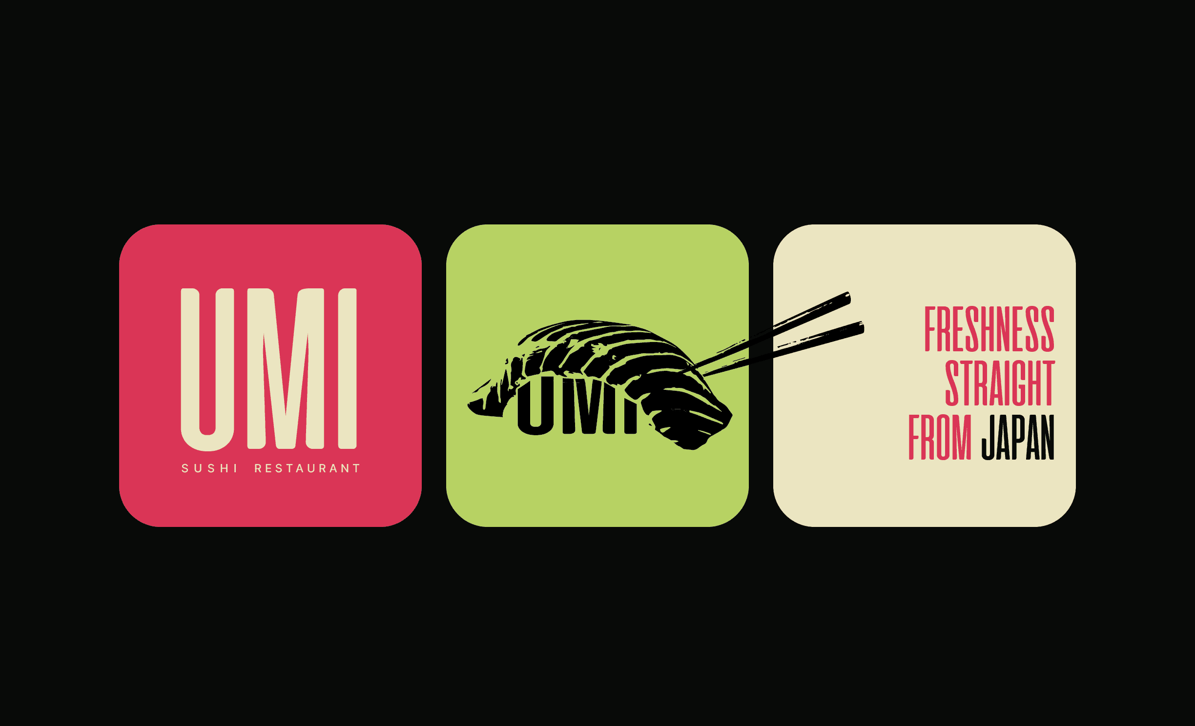 Forget “less is more”, sometimes more is magic. Umi Sushi is my take on controlled chaos: a detailed, hand-crafted logo full of texture and movement, balanced by clean visuals and bold, unapologetic color. The logo draws inspiration from traditional Japanese woodblock printing rich in strokes, organic forms, and imperfect beauty. The sushi illustration carries a sense of handmade authenticity, while the chopsticks slice through the frame, adding motion and rhythm to the composition. The typography is tall, confident, and modern standing strong against the chaos, much like the discipline behind Japanese craftsmanship. The contrasting color palette of vibrant coral red, soft beige, and lively green mirrors the essence of sushi itself freshness, boldness, and balance. It’s sushi branding, but make it art.